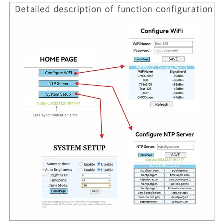 4. Clock itself WIFI hotspot connection with the network, does not rely on third-party software