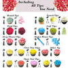 4. The set includes: 1 x non-slip cake turntable, 48 x cake decorating nozzle, 6 x large decorating nozzle, 1 x 12 inch reusable decorating bag, 1 x 14-inch reusable decorating bag, 1 x cake decorating brush, 1 x cake sealer, 1 x silicone pen, 3 x cake scraper, 2 x decorating nozzle small converter, 1 x decorating nozzle large converter, 25 x disposable decorating bag, 1 x direct cream Knife (27cm), 1 x cream kiss spatula (27cm), 2 x decorating nails, 1 x cake scissors, 12 x cake cup