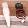 3. Place one end of the plastic tube into the container filled with water and insert the white porcelain part completely into the soil.