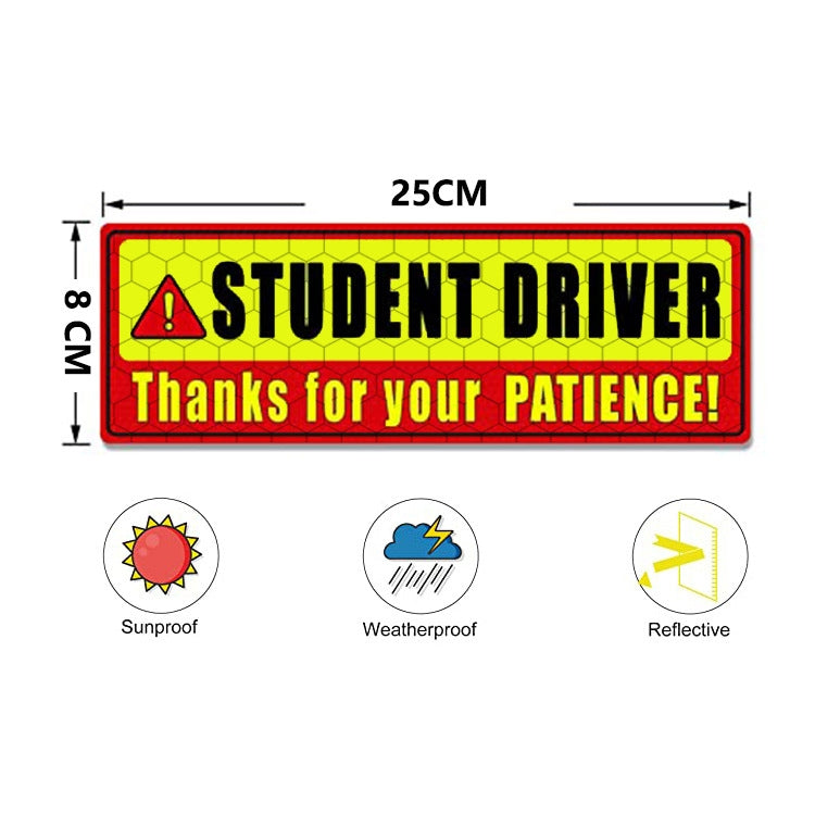 2 PCS STUDENT DRIVER Novice Car Sticker Magnetic Reflective Car Sticker, 25 x 8 cm