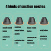 10. 4 kinds of suction nozzles: small round holes: suitable for nose; medium round holes: gentle exfoliation/dead skin; large round holes: specifically for stubborn blackheads; oval holes: suitable for nose wings