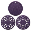 3 in 1 Hollow Flower Silicone Heat Insulation Pad Anti-Scalding Pot Bowl Pad Set, Black, Yellow, Blue, Green, Purple, Gray