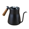 304 Stainless Steel Coffee Hand Pot Wooden Handle Coffee Pot Teflon Long-Mouth Slender Pot, Without Thermometer, With Thermometer