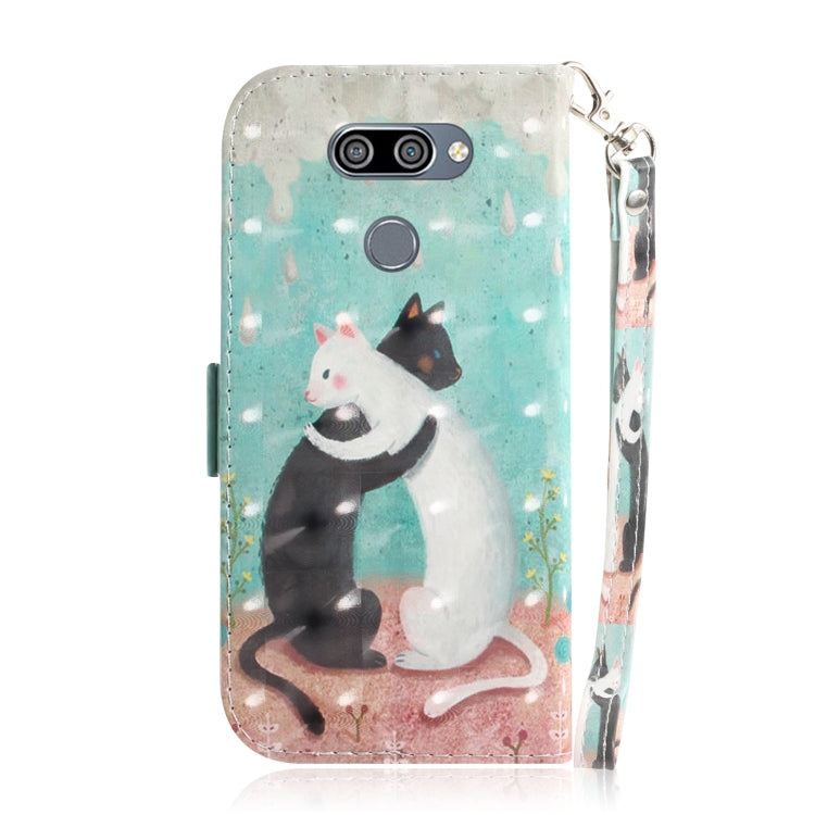3D Painting Black White Cat Pattern Coloured Drawing Horizontal Flip Leather Case for LG K50, with Holder & Card Slots & Wallet, For LG K50