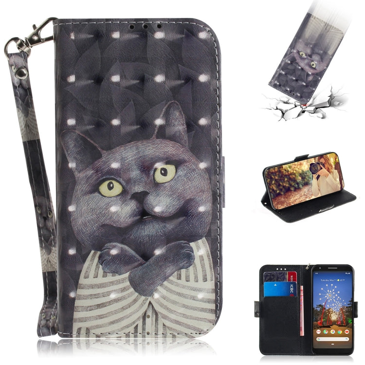3D Painting Embrace Cat Pattern Coloured Drawing Horizontal Flip Leather Case for Google Pixel 3a, with Holder & Card Slots & Wallet, For Google Pixel 3a