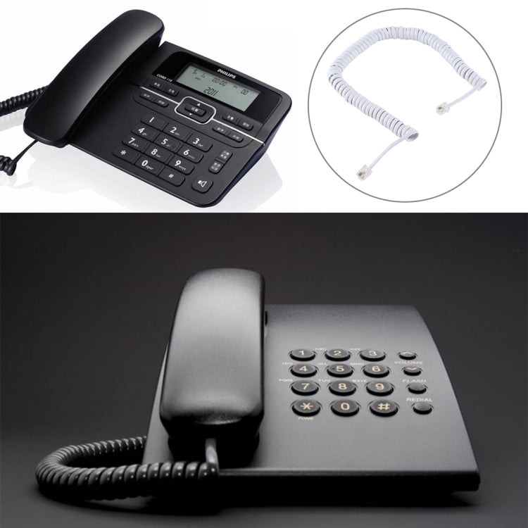 4 Core Male to Male RJ11 Spring Style Telephone Extension Coil Cable Cord Cable, Stretch Length: 3m(White), Length: 3m