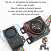 12. The main unit and speaker are integrated, easy to install, and the alarm will emit a high-decibel alarm sound when the vehicle is vibrated and pushed, using the sound to deter thieves