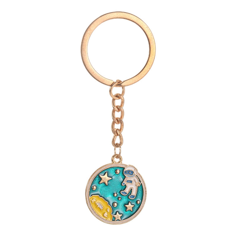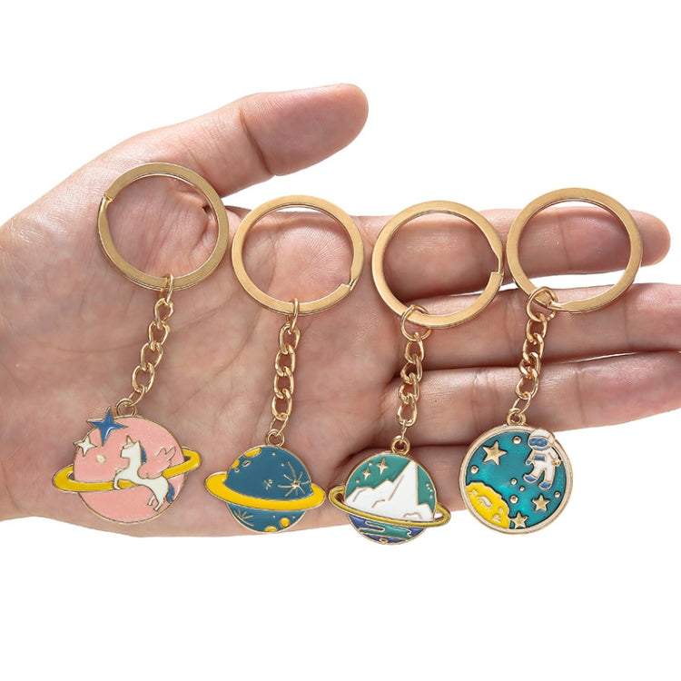 5 PCS Drip Oil Round Keychain Key Ring Bag Pendant, Planet Rocket, Cosmic Planet, Astronauts, Snow Mountain, Blue Planet, Astronauts Alloy, Unicorn