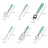 9 in 1 Plastic Handle Stainless Steel Kitchen Utensils Household Gadget Set, Cyan, Black