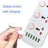 A05 2m 3000W 4 Plugs + 6-USB Ports Multifunctional Flame-Retardant Socket With Switch, UK Plug, US Plug