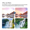 1. CPL Filters: Increases color saturation, creating deep, rich scenic images. Helps to reduce the amount of light entering the lens.