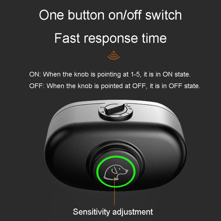 3. One key switch on/off, fast response time, IPX7 waterproof, intelligent recognition, 5-speed adjustment to stop barking gradually