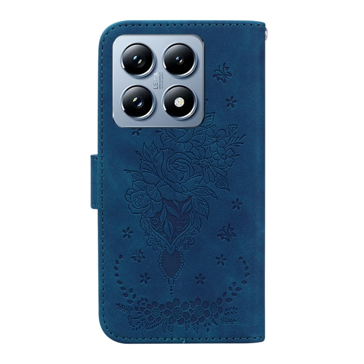 Butterfly Rose Embossed Leather Phone Case, For Xiaomi 14T Pro, For Xiaomi 14T, For Xiaomi Poco M6 4G, For Xiaomi Poco F6 Pro
