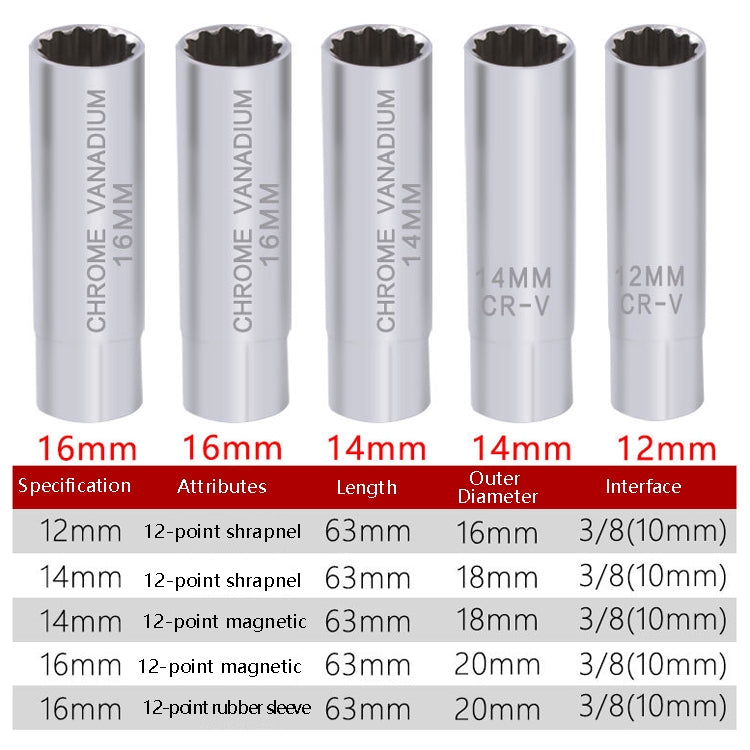 Car Spark Plug Sleeve Wrench Thin Flames Disassembly Tool, Specification:, 14mm (Shrapnel), 14mm (Magnetic), 16mm (Magnetic)