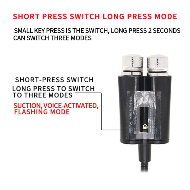 5. Short press of the small button is the switch, long press for 2 seconds to switch between three modes (breathing, voice control, flashing mode).