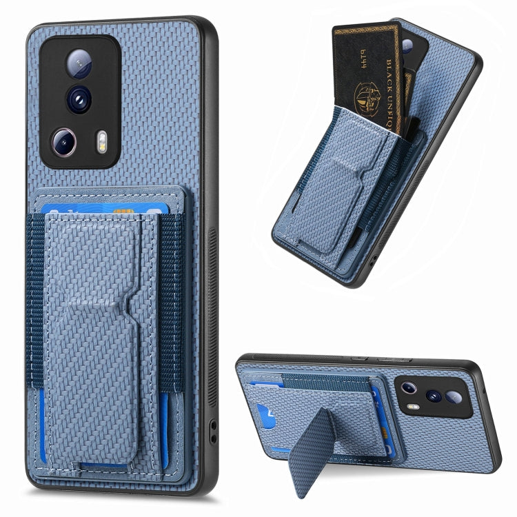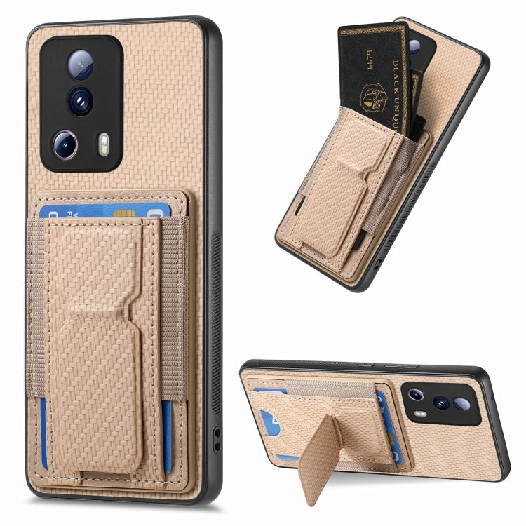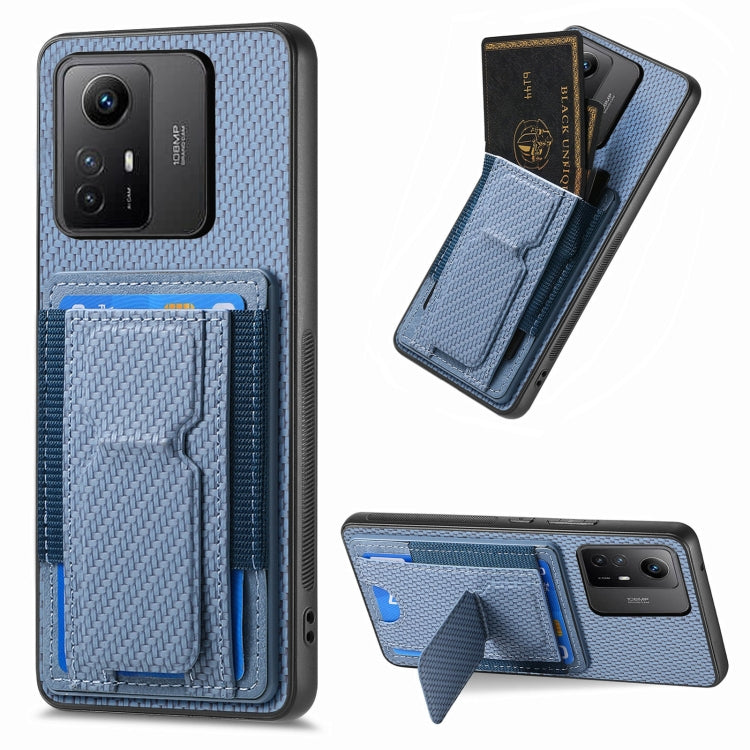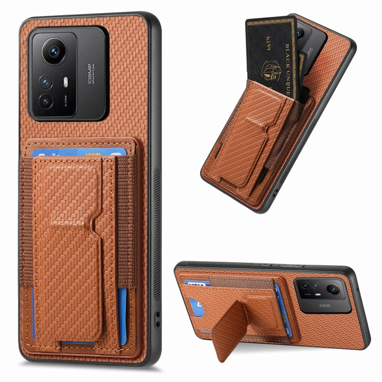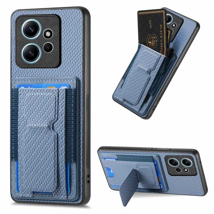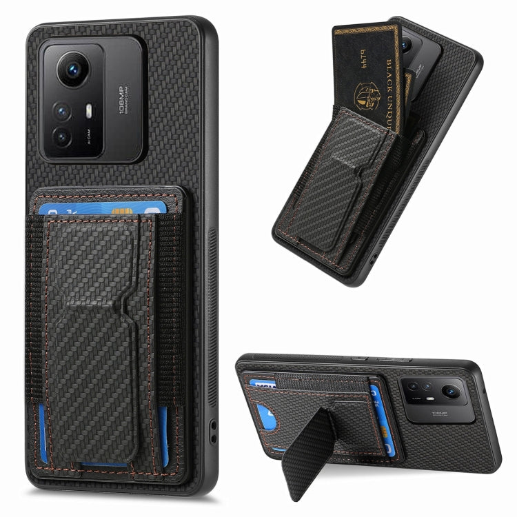 Carbon Fiber Fold Stand Elastic Card Bag Phone Case, For Xiaomi 13T, For Xiaomi Redmi Note 12S, For Xiaomi Redmi Note 12 4G, For Xiaomi Redmi Note 12 Turbo