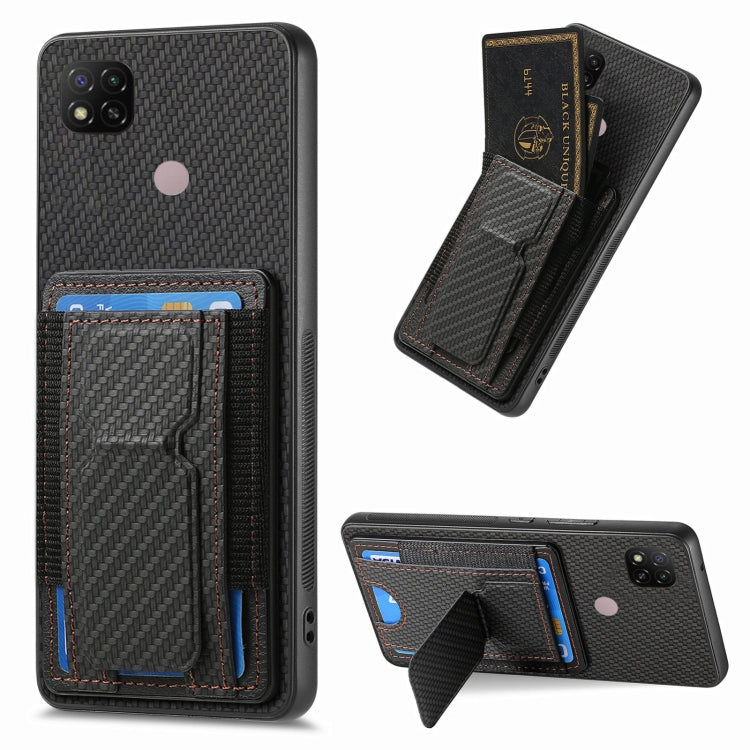 Carbon Fiber Fold Stand Elastic Card Bag Phone Case, For Xiaomi Poco X3 NFC, For Xiaomi Redmi 9A, For Xiaomi Redmi 9C