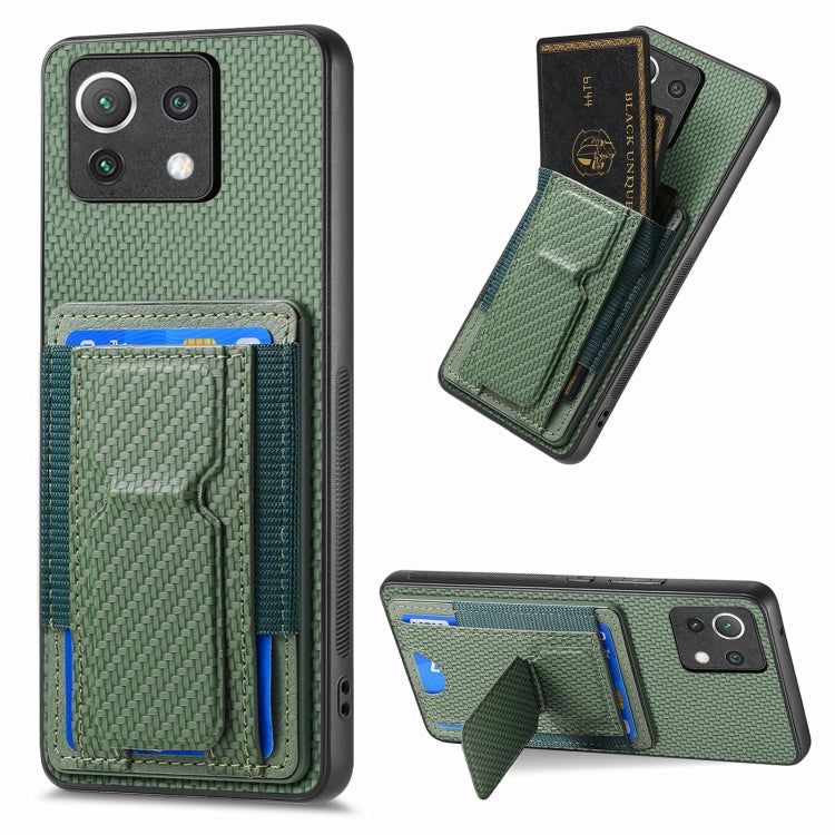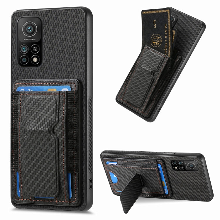 Carbon Fiber Fold Stand Elastic Card Bag Phone Case, For Xiaomi Redmi K40, For Xiaomi Mi 11, For Xiaomi Mi 10T 5G, For Xiaomi Mi 10T Pro