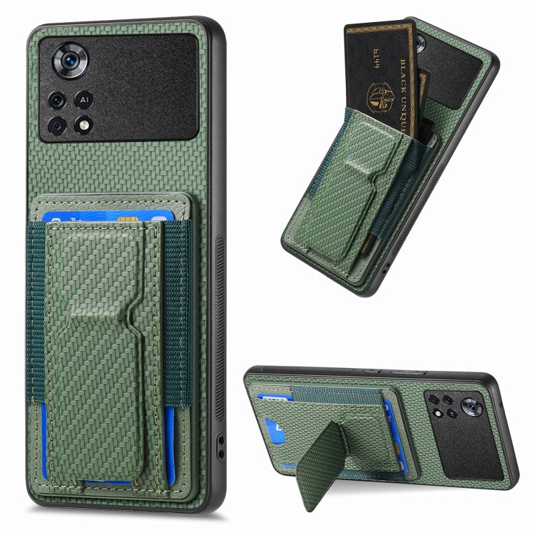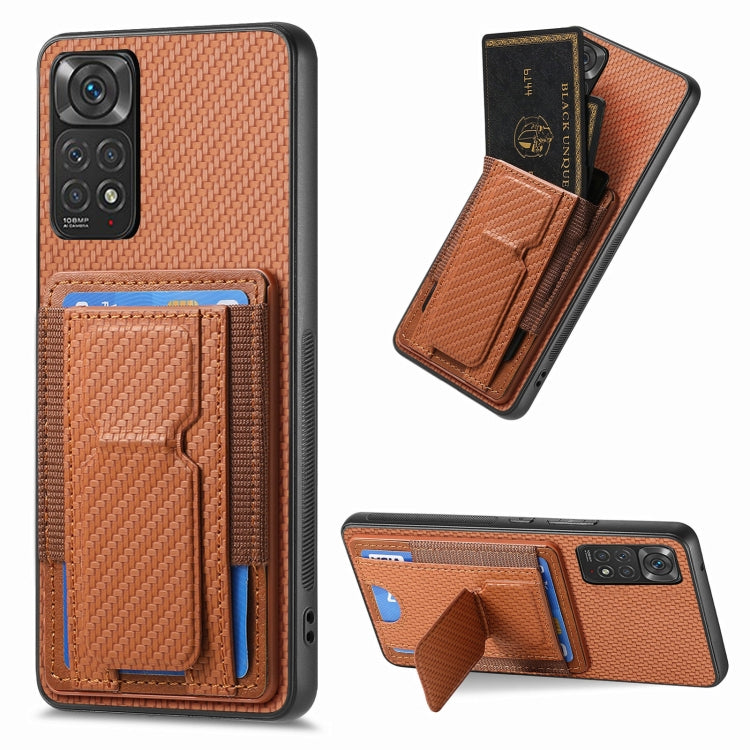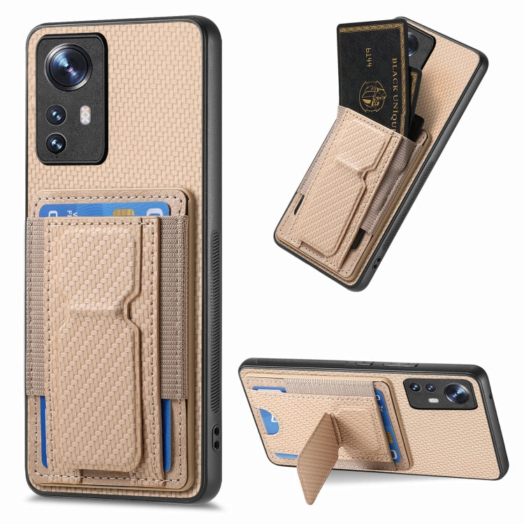 Carbon Fiber Fold Stand Elastic Card Bag Phone Case, For Xiaomi Redmi K50 / K50 Pro, For Xiaomi Poco X4 Pro 5G, For Xiaomi Redmi Note 11S, For Xiaomi 12 Pro