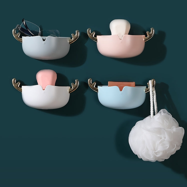 Cartoon Animal Cute Deer Soap Holder Seamless Wall-Mounted Bathroom Storage Box, White, Gray, Pink, Blue