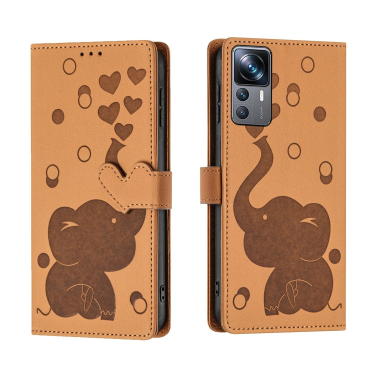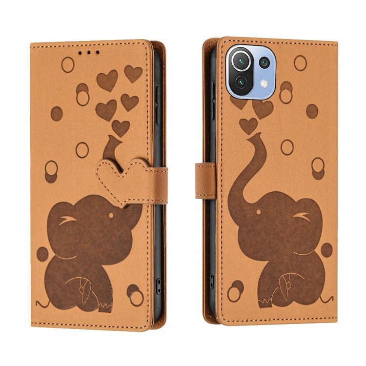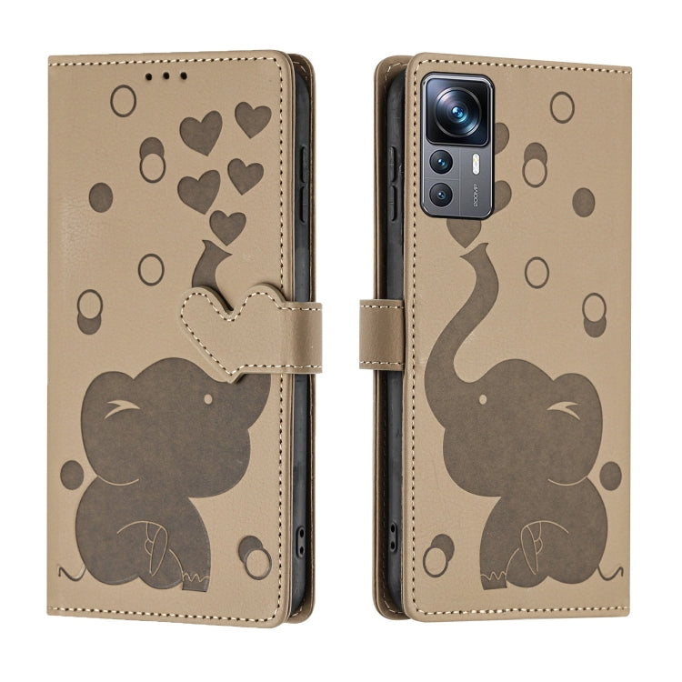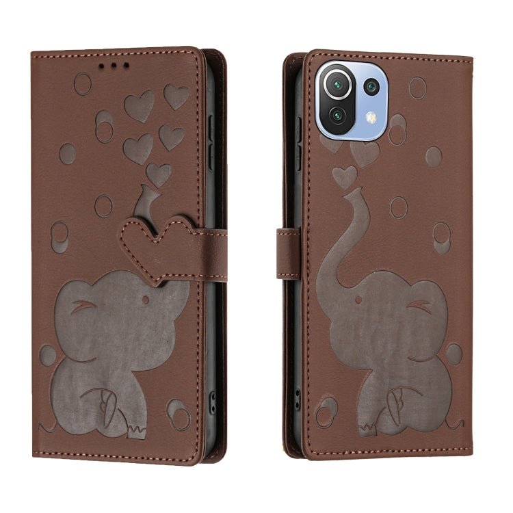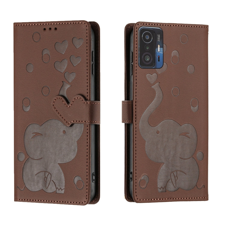 Cartoon Elephant Embossed Leather Phone Case, For Xiaomi 12T / 12T Pro, For Xiaomi 11T / 11T Pro, For Xiaomi Mi 11 Lite
