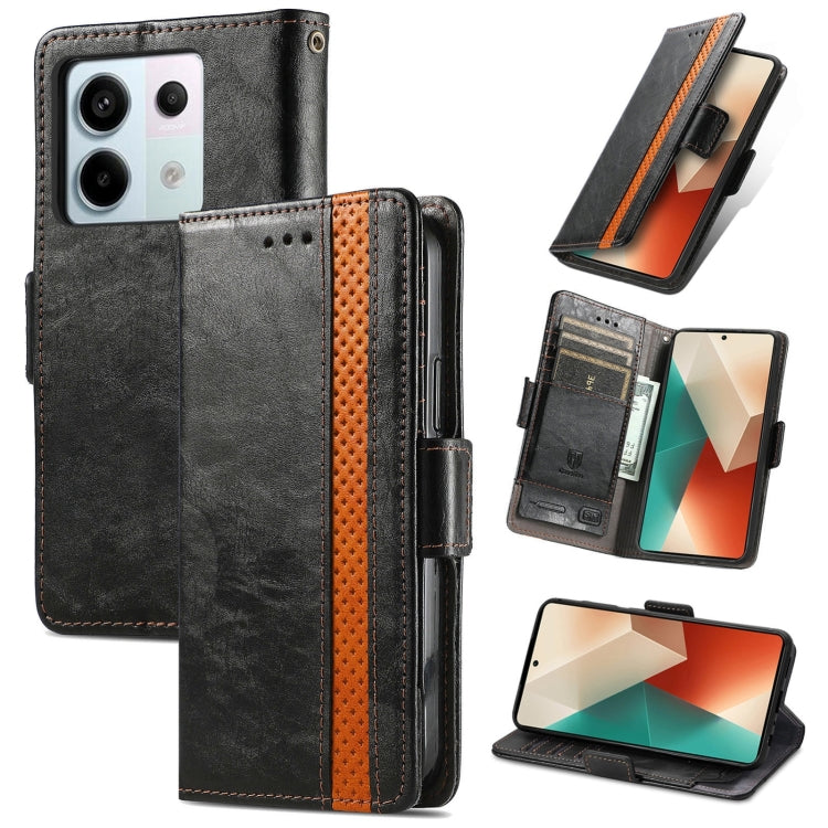 CaseNeo Splicing Dual Magnetic Buckle Leather Phone Case, For Xiaomi Redmi Note 14 5G, For Xiaomi Redmi Note 14 Pro+ 5G, For Xiaomi Redmi Note 14 Pro 5G, For Xiaomi Redmi Note 13 Pro 4G