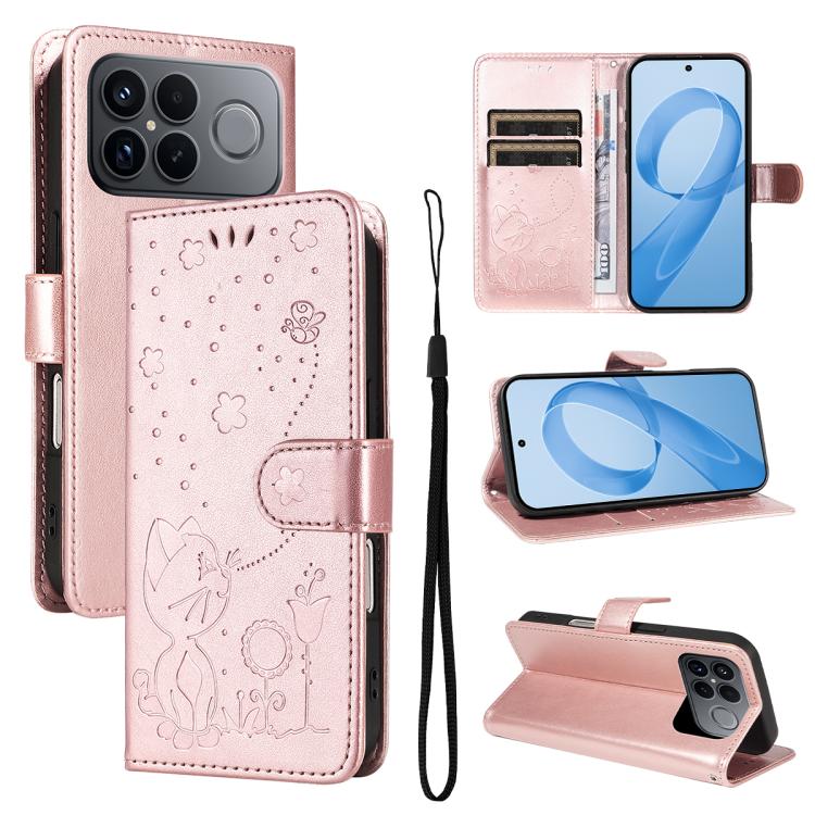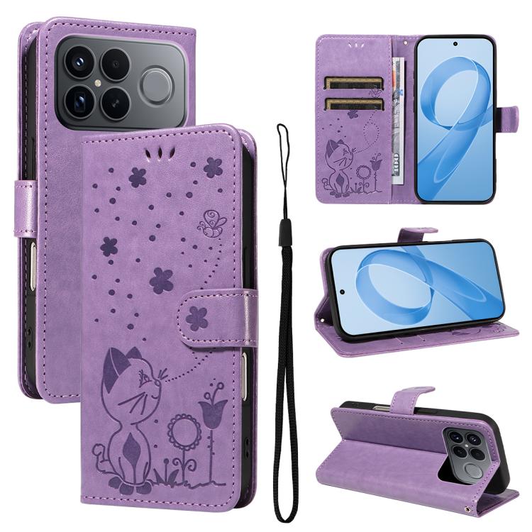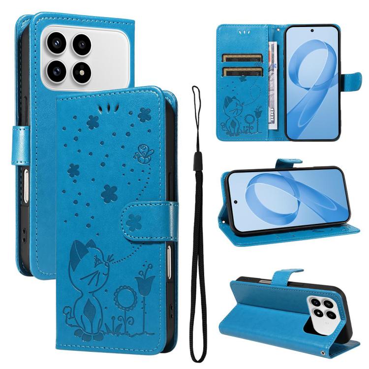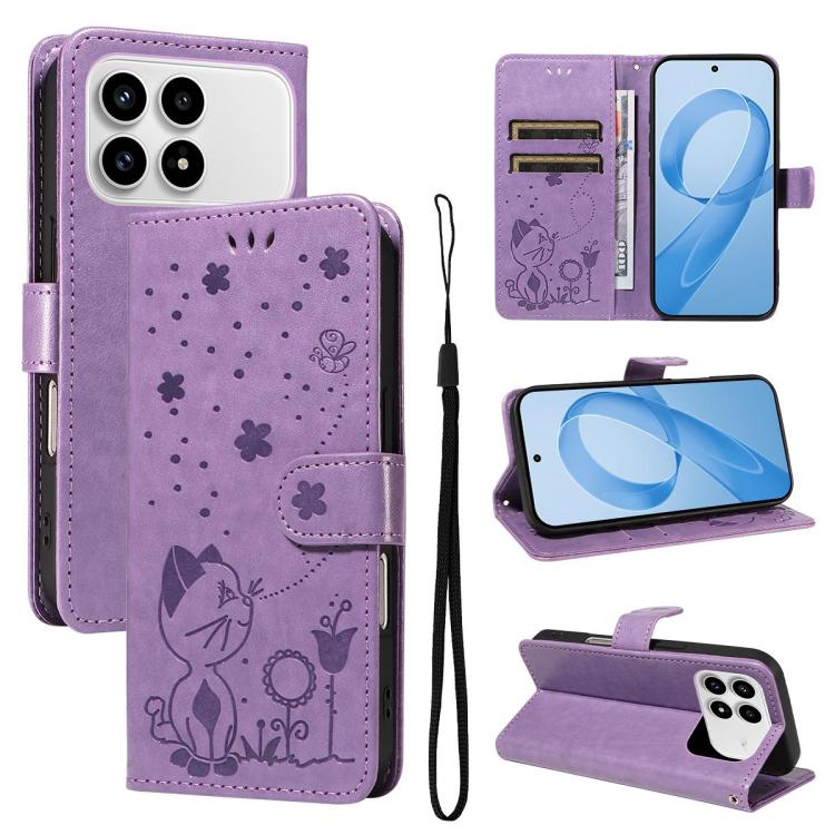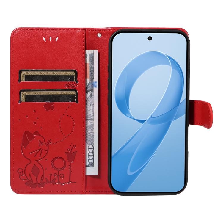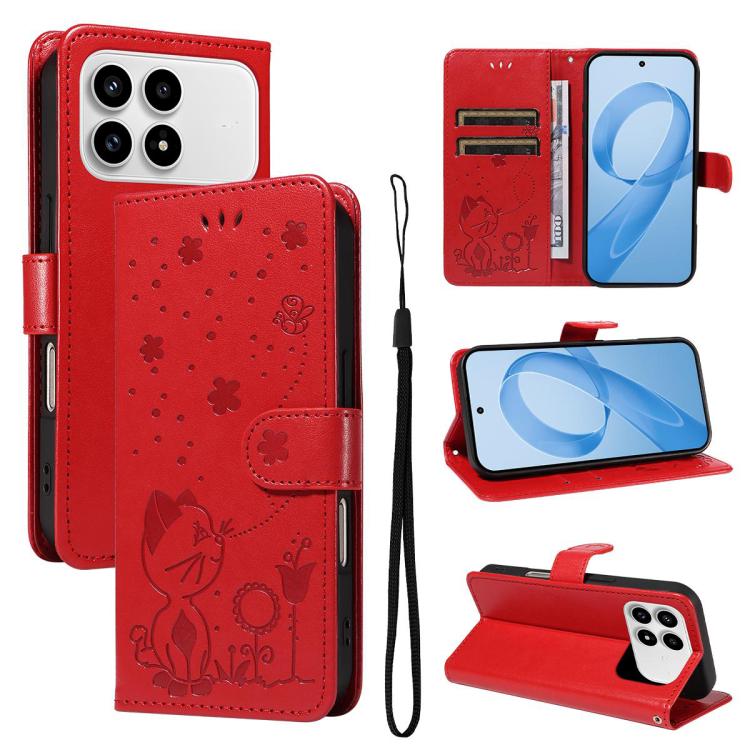 Cat and Bee Embossed Flip Leather Phone Case, For Redmi K90 Pro Max/Poco F8 Ultra, For Redmi K90/Poco F8 Pro, For Redmi 15C 5G / 4G EU 173mm, For Redmi 15 5G Global/15 4G SEA 169.5mm