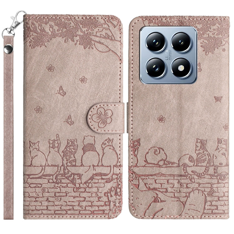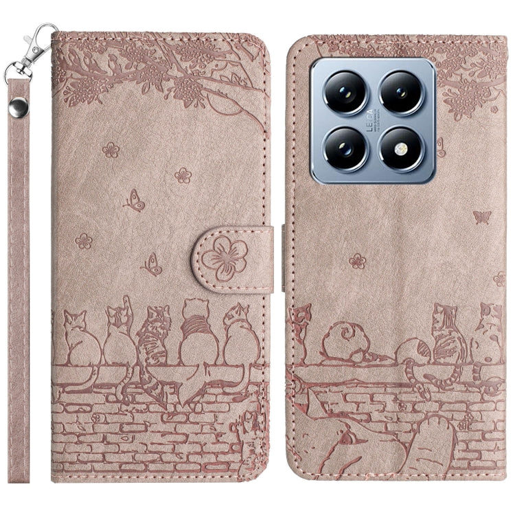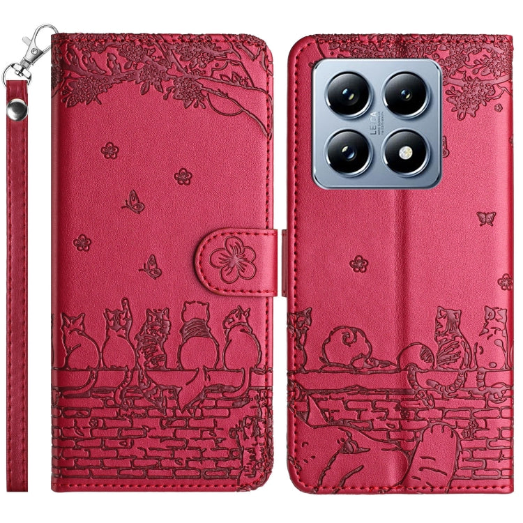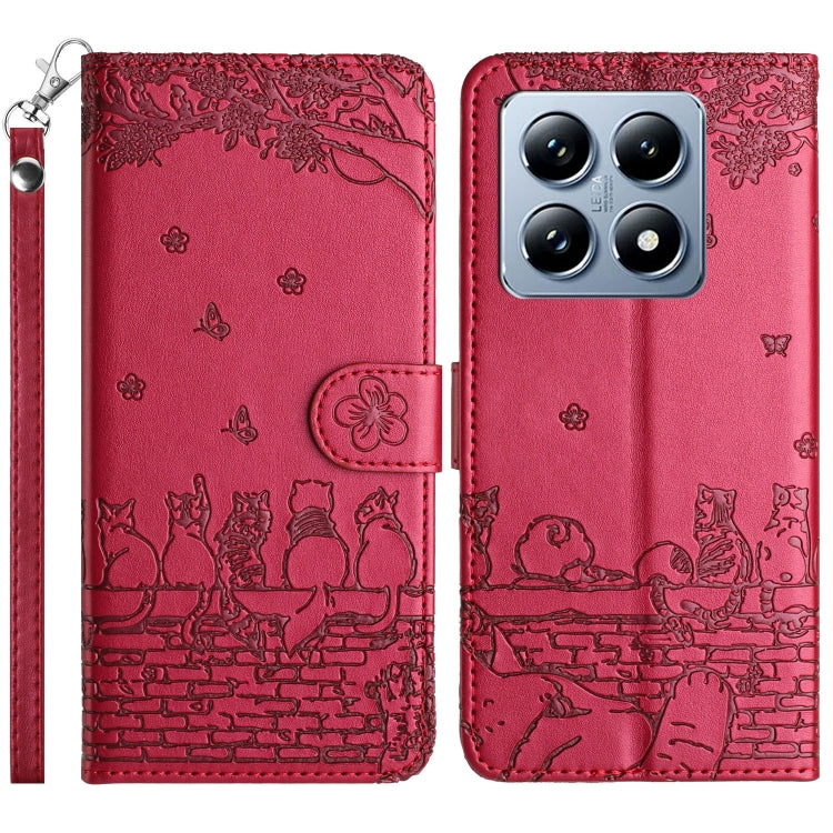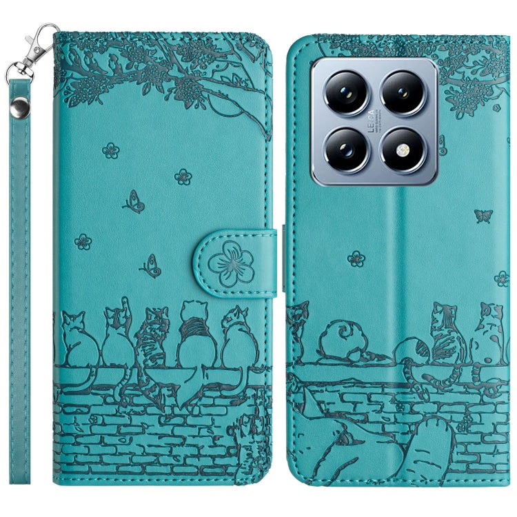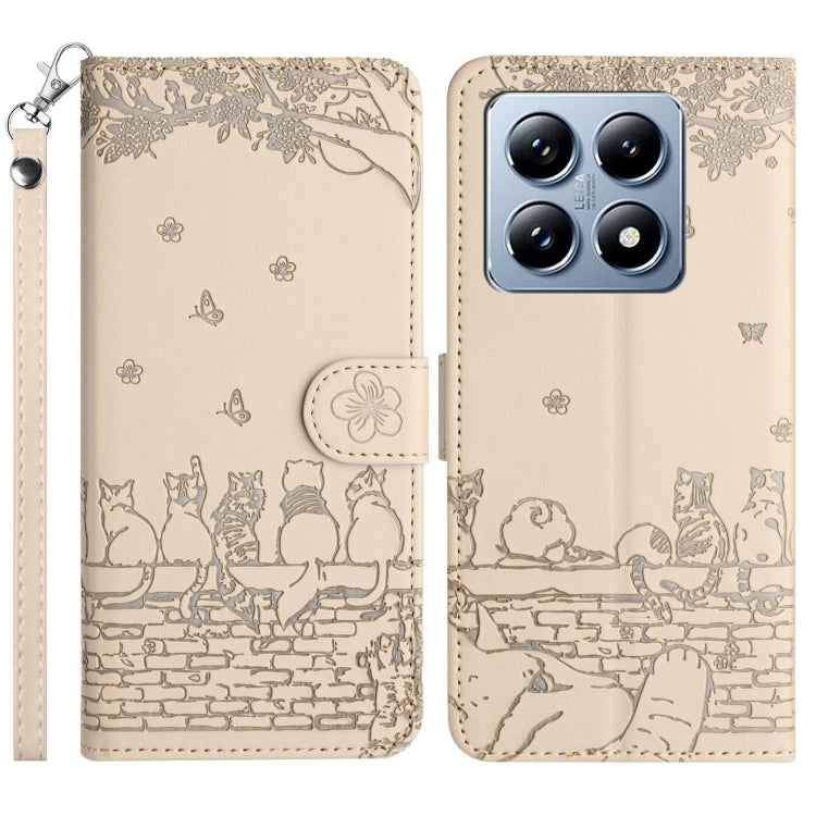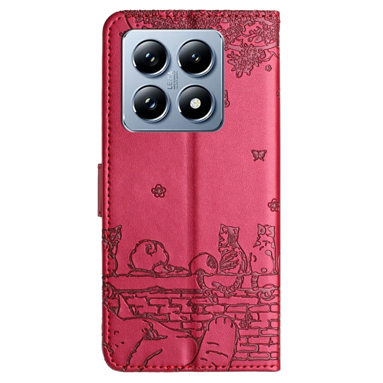 Cat Embossing Pattern Leather Phone Case with Lanyard, For Xiaomi 14T Pro, For Xiaomi 14T
