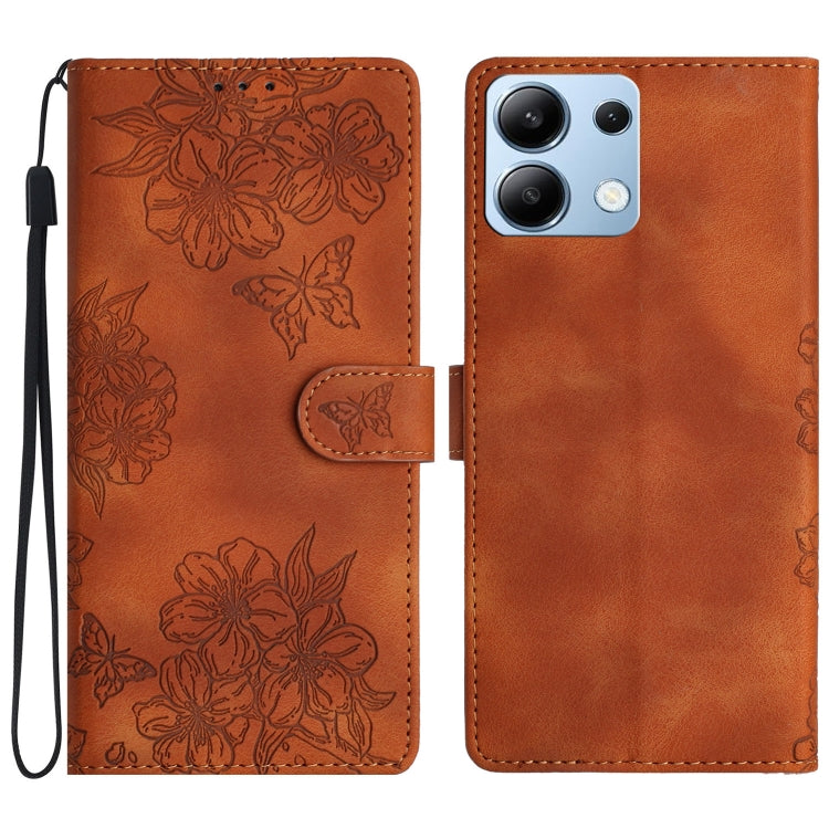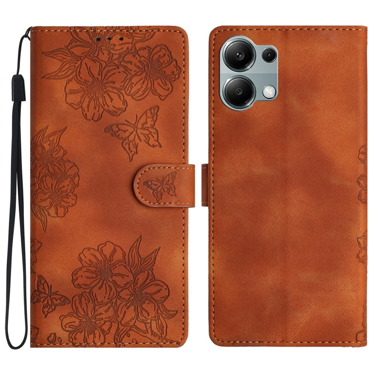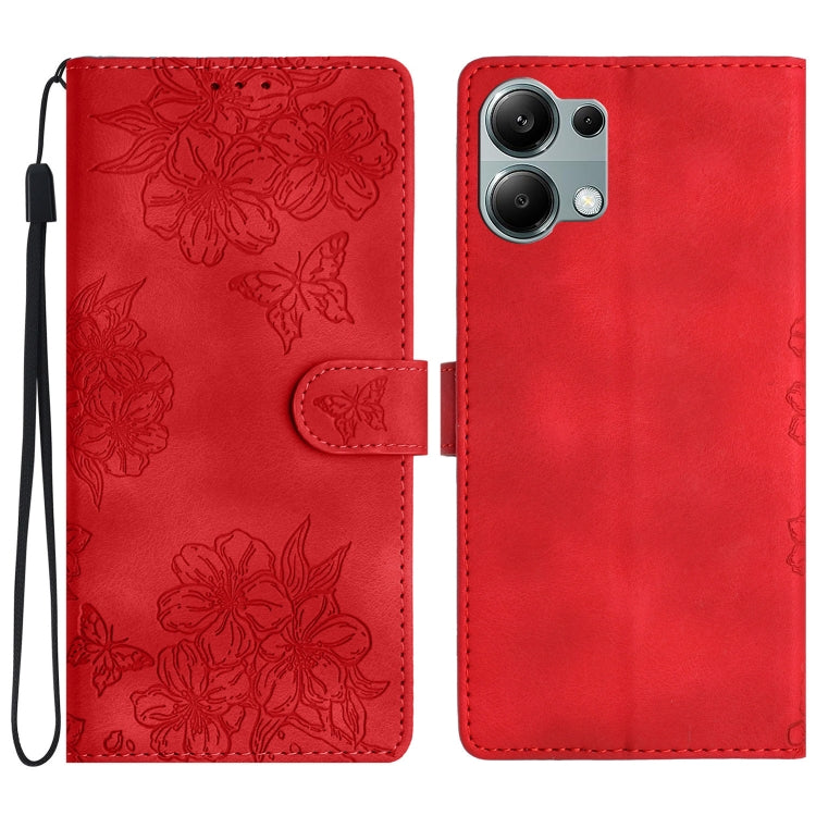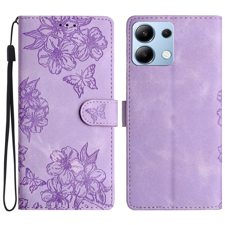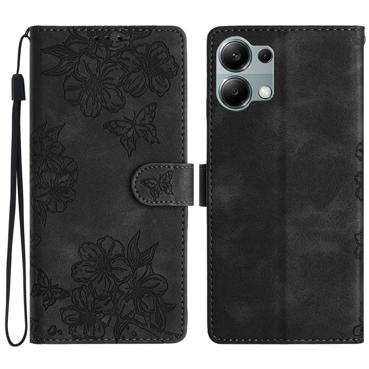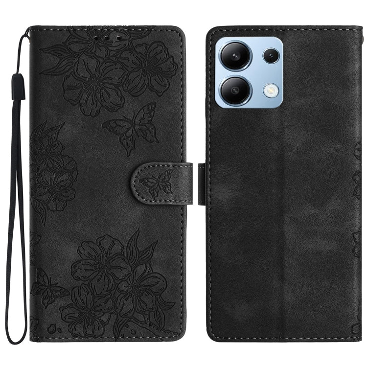 Cherry Blossom Butterfly Skin Feel Embossed PU Phone Case, For Redmi 14C 4G, For Redmi Note 13 Pro 4G, For Redmi Note 13 4G