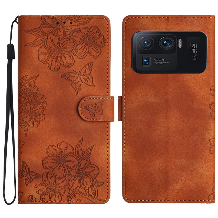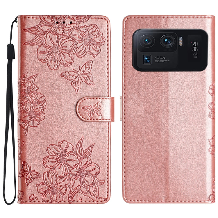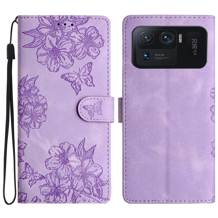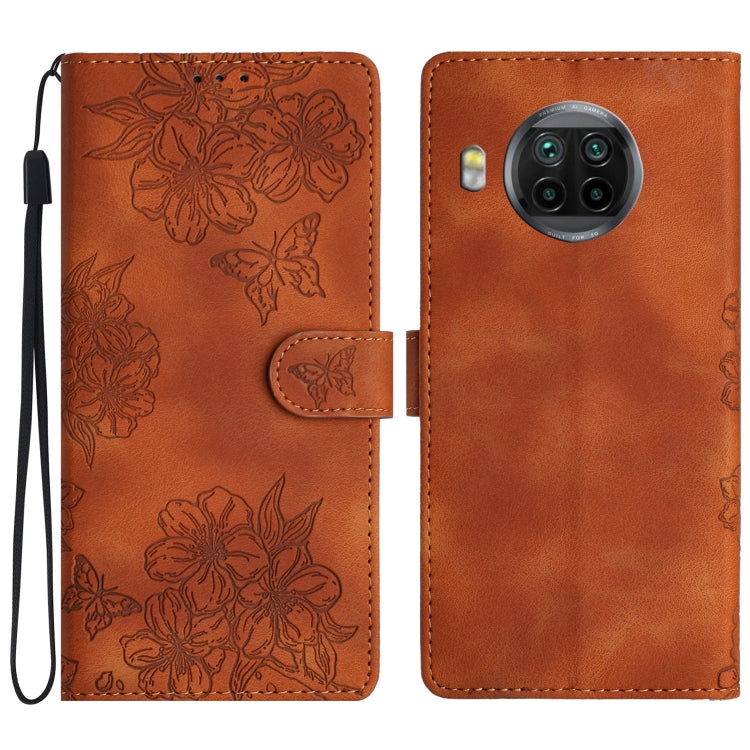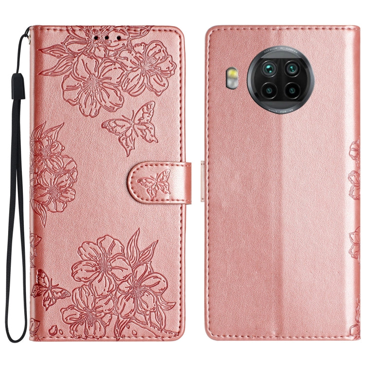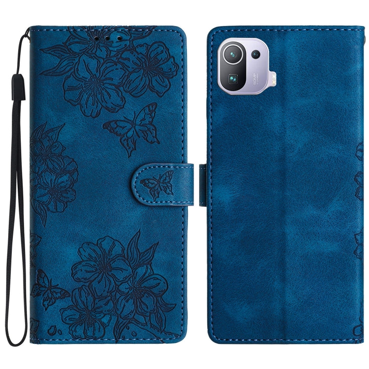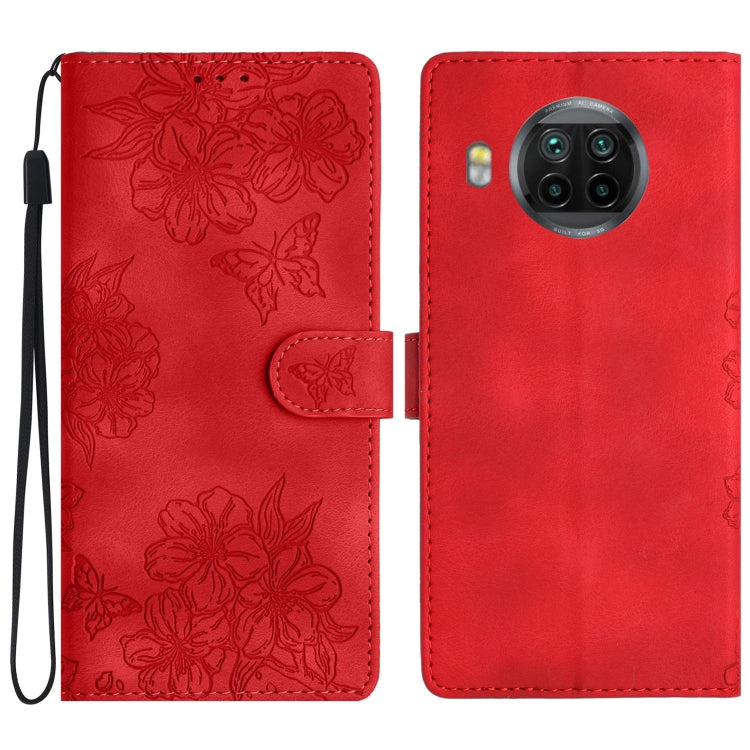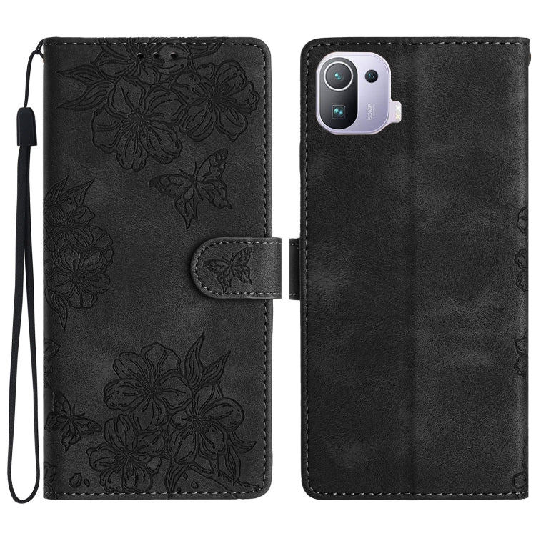 Cherry Blossom Butterfly Skin Feel Embossed PU Phone Case, For Xiaomi Mi 11 Ultra, For Xiaomi Mi 11 Pro, For Xiaomi Mi 10T Lite 5G