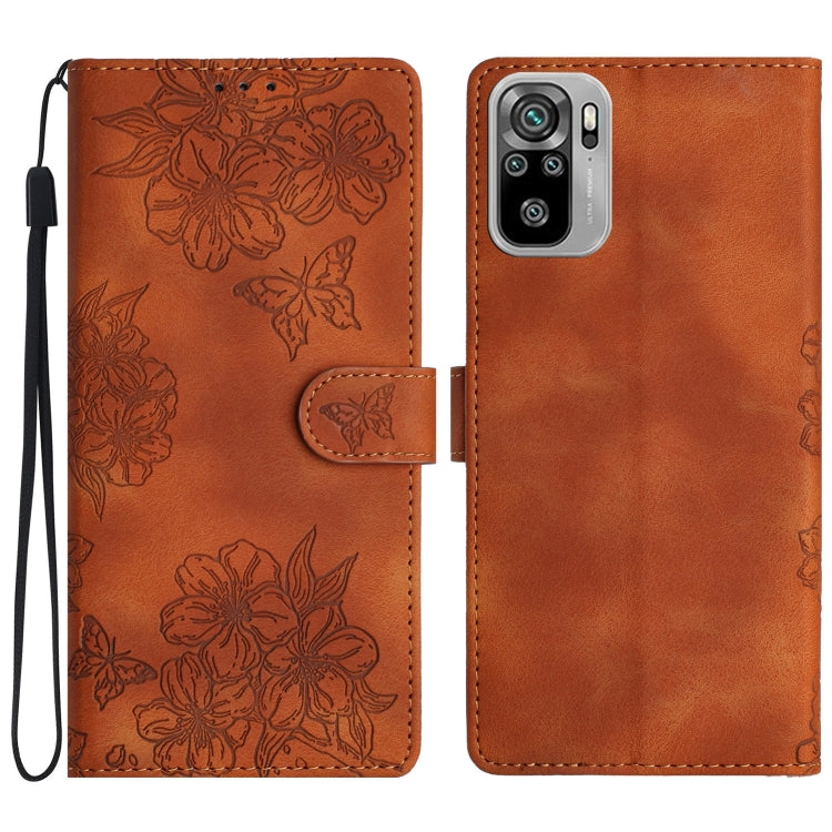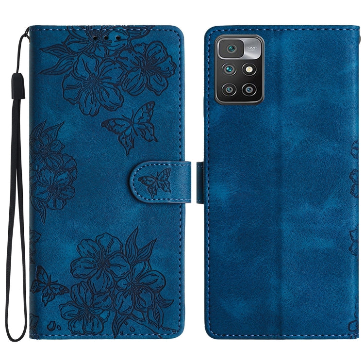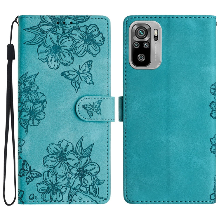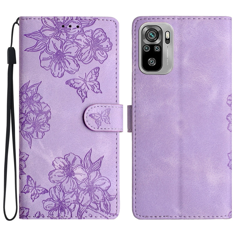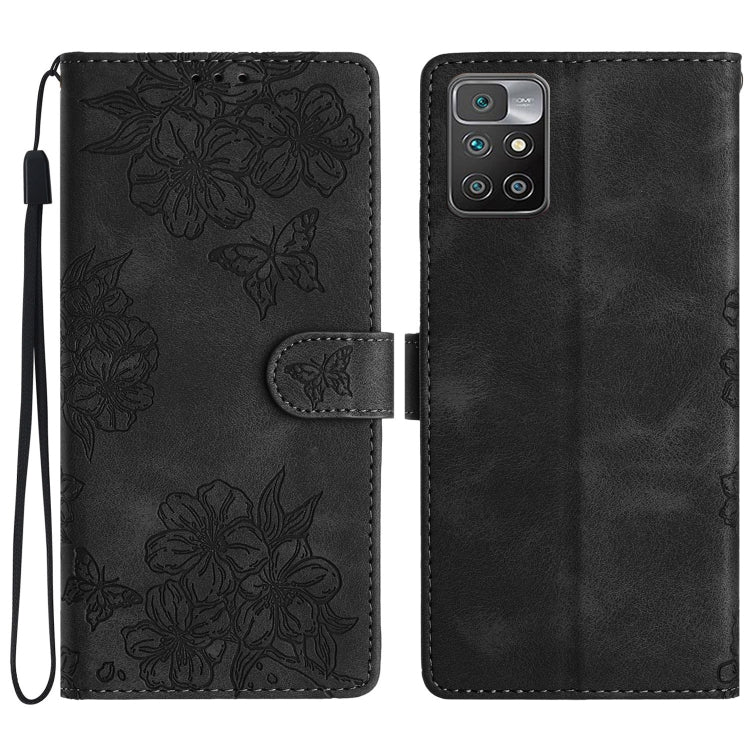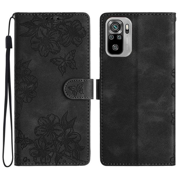 Cherry Blossom Butterfly Skin Feel Embossed PU Phone Case, For Xiaomi Redmi 10, For Xiaomi Redmi Note 10 5G, For Xiaomi Redmi Note 10S