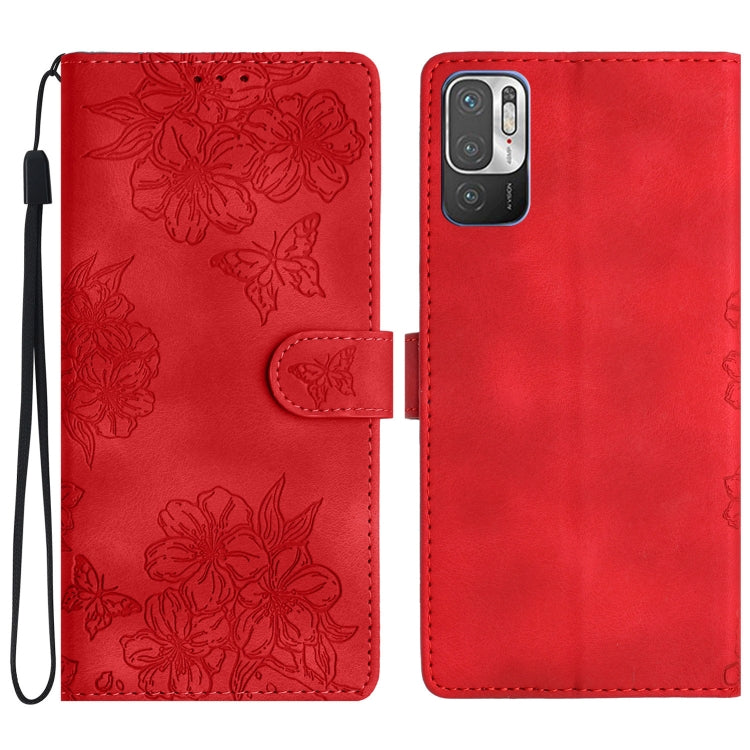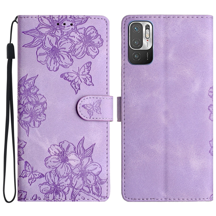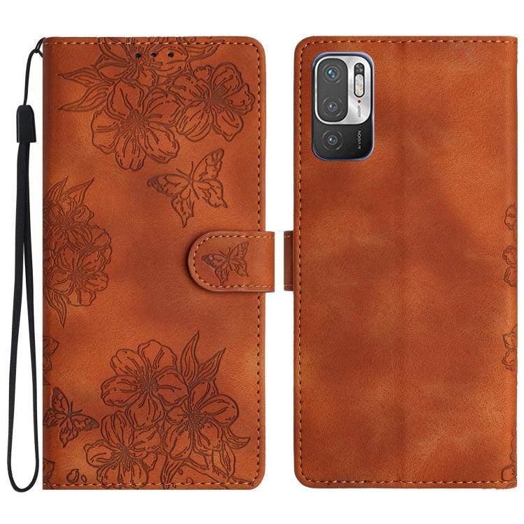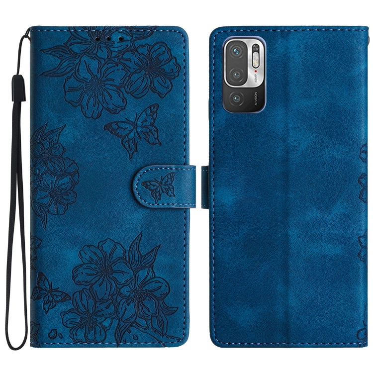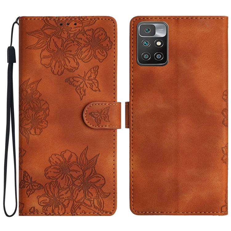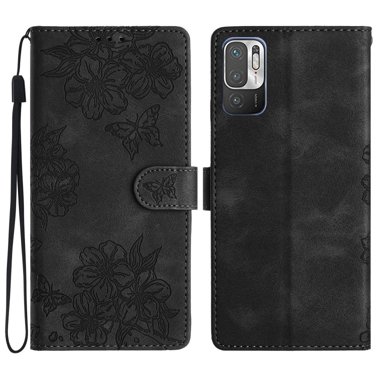 Cherry Blossom Butterfly Skin Feel Embossed PU Phone Case, For Xiaomi Redmi 10, For Xiaomi Redmi Note 10 5G, For Xiaomi Redmi Note 10S
