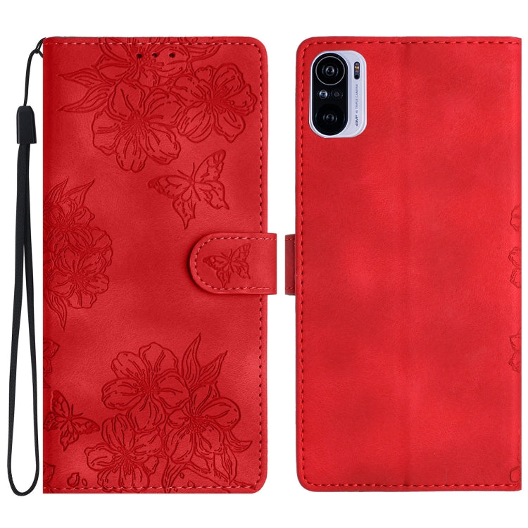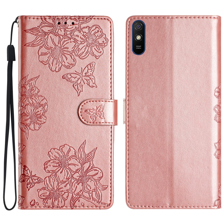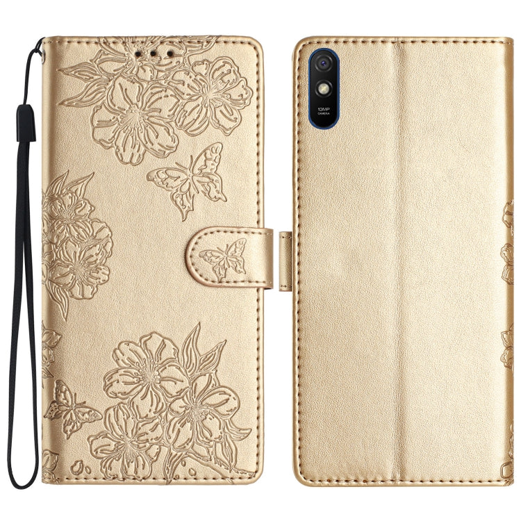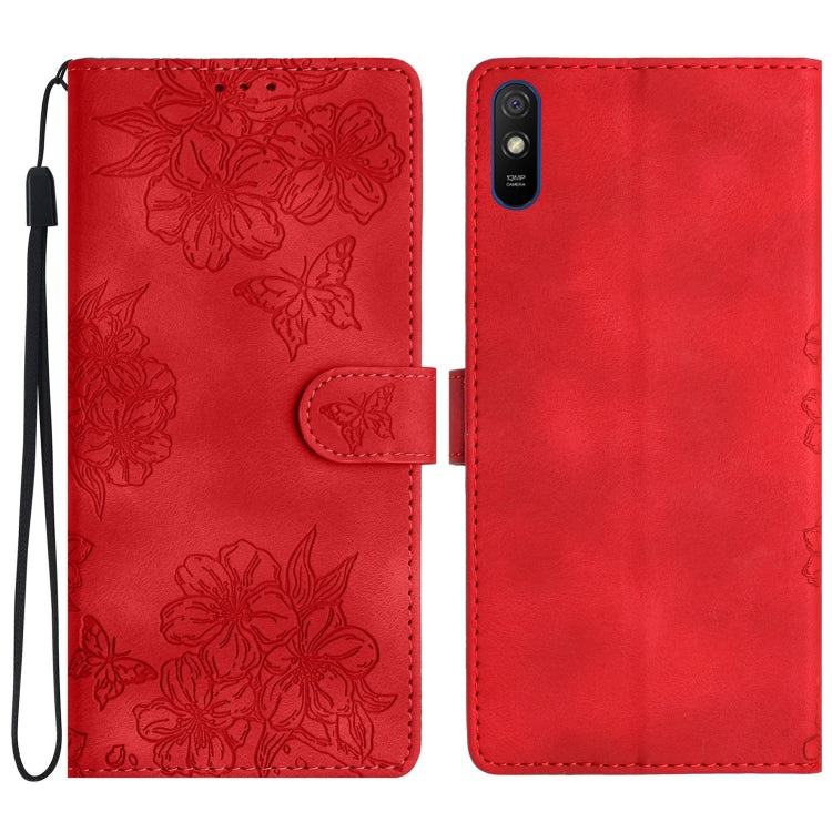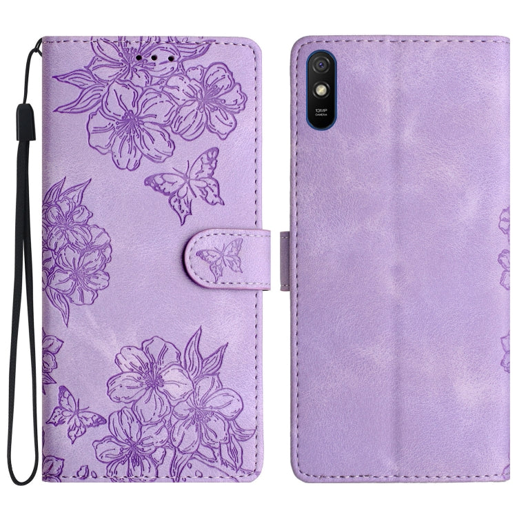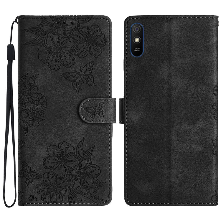 Cherry Blossom Butterfly Skin Feel Embossed PU Phone Case, For Xiaomi Redmi K40 / K40 Pro, For Xiaomi Redmi Note 9 5G / Note 9T, For Xiaomi Redmi 9A