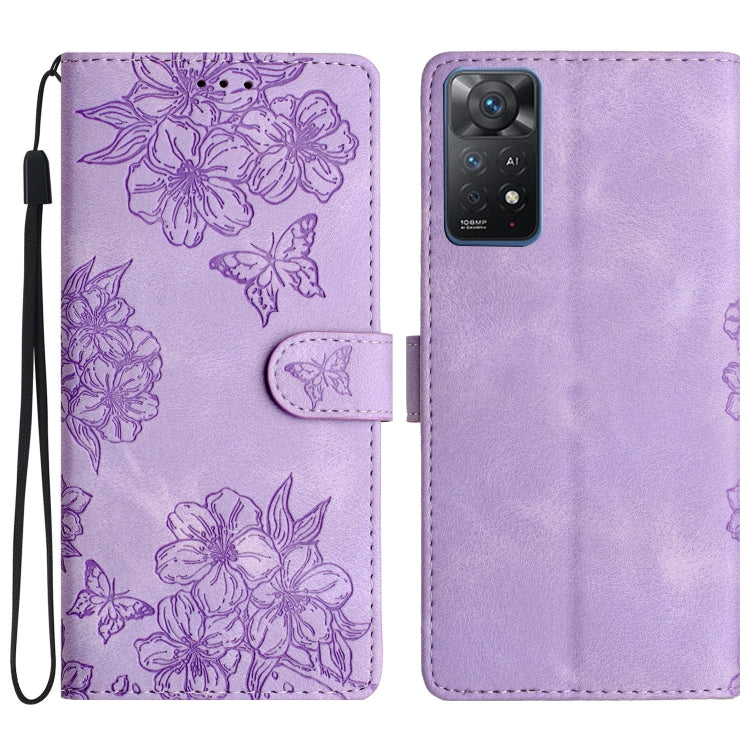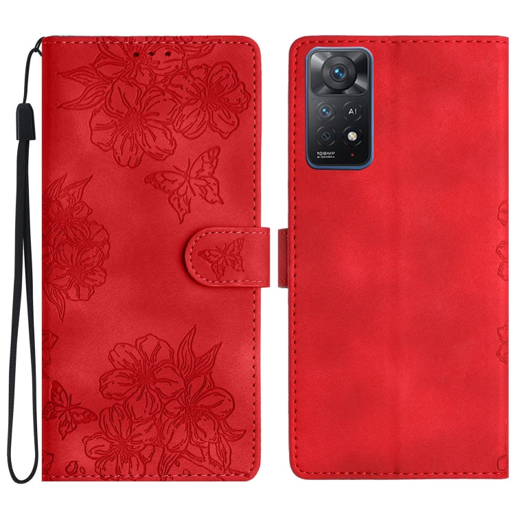 Cherry Blossom Butterfly Skin Feel Embossed PU Phone Case, For Xiaomi Redmi Note 11 Pro 5G Global, For Xiaomi Redmi 10A, For Xiaomi Redmi 10C