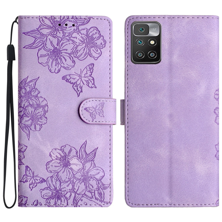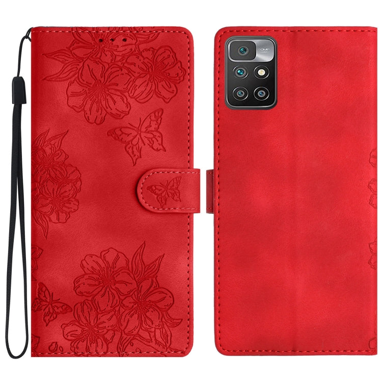 Cherry Blossom Butterfly Skin Feel Embossed PU Phone Case, For Xiaomi Redmi Note 11S 4G, For Xiaomi Redmi 10 2022, For Xiaomi Redmi Note 11 4G Global