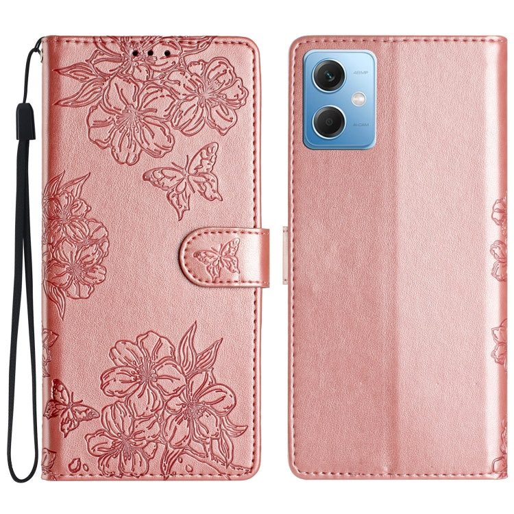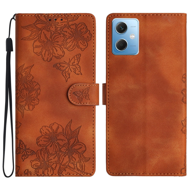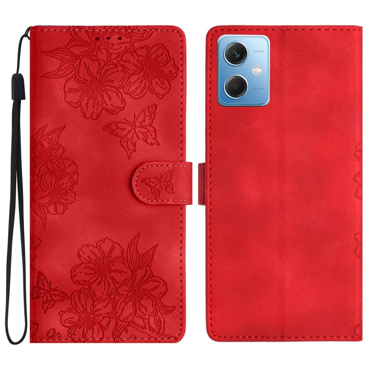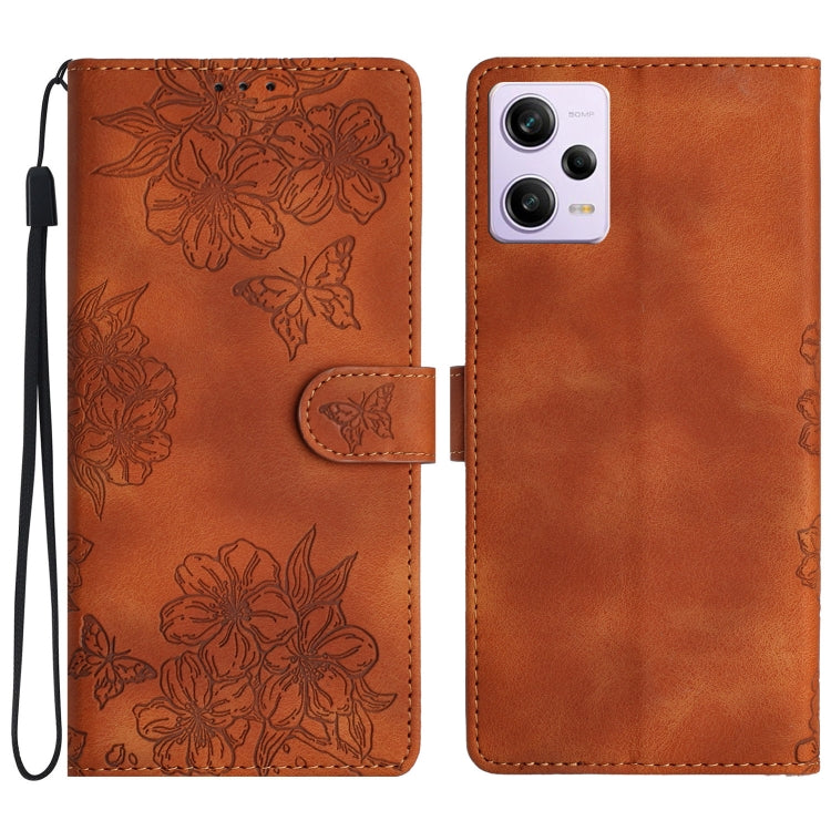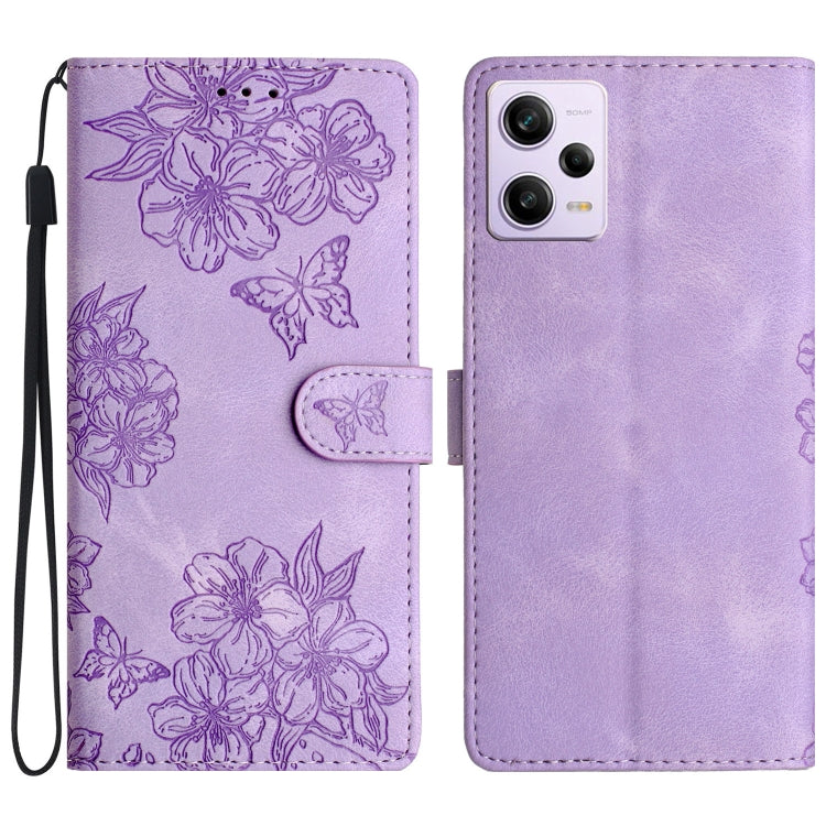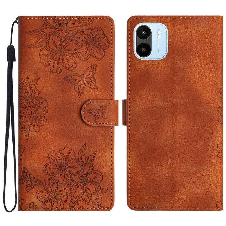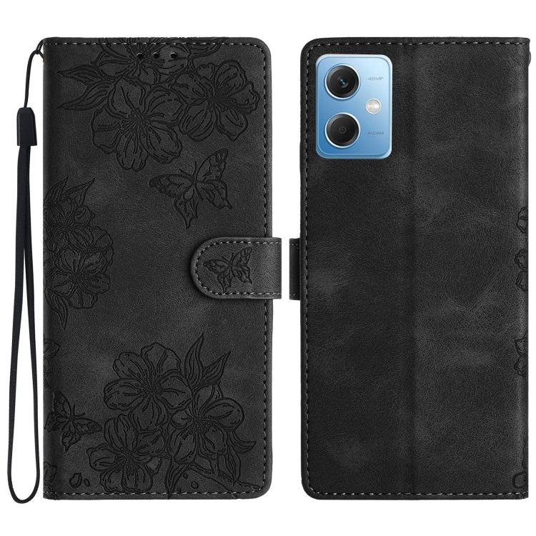 Cherry Blossom Butterfly Skin Feel Embossed PU Phone Case, For Xiaomi Redmi Note 12 Global, For Xiaomi Redmi Note 12 Pro Global, For Xiaomi Redmi A1