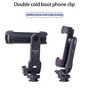 6. Both ends of the mobile phone clip have cold shoe openings, which can be connected to microphones, fill lights, etc. to expand the cold shoe openings