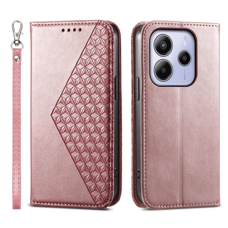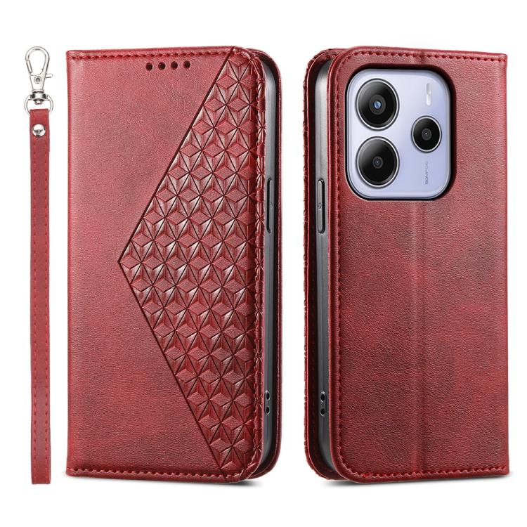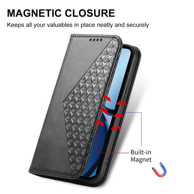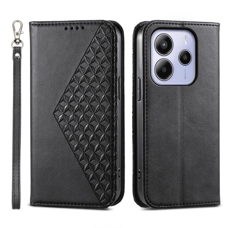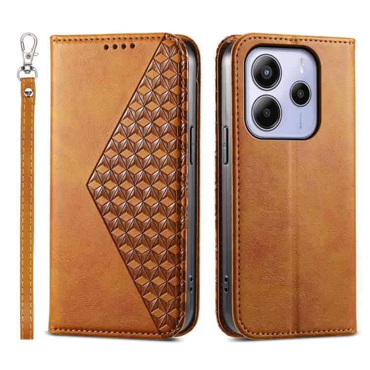 Cubic Grid Calf Texture Magnetic Leather Phone Case, For Redmi A5 4G 171.7mm / Xiaomi Poco C71, For Redmi Note 14 4G 164.84mm, For Redmi Note 14 4G 163.25mm Global, For Redmi 14C 4G