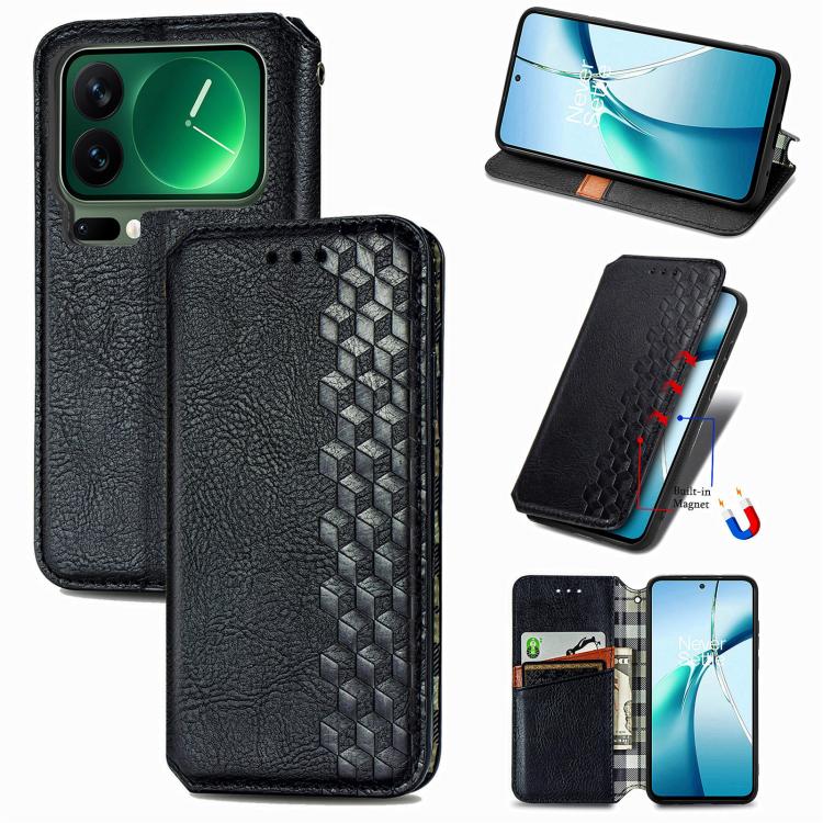 Cubic Grid Pressed Magnetic Leather Phone Case, For Xiaomi 17 Pro Max, For Xiaomi 17 Pro, For Xiaomi 17, For Xiaomi Poco M7 4G 169mm