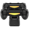 2. Install the PS4 controller in the upright position on the charger. Make sure that the EXT connector of the PS4 controller is properly inserted into the charging terminal of the product. When the handle is normally charged on the dock charger, the corresponding PS4 handle symbol icon in the front lens changes from green to red