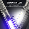 -Side light 3 gears: 3 x LED white light strong light - 3 x LED white light low light - 3 x LED white light fast flash, long press to switch to the side light 2 x LED purple light