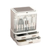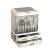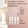 11. Features: waterproof and dustproof, LED light stepless dimming, lipstick storage, large-capacity design, transparent and visible, open the lid to hang jewelry