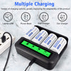 6. 8 slots independent charging, can be simultaneously or randomly combined to charge eight AAA, AA, or four C or D batteries