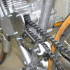 2. Spring loaded tensioner automatically adjusting tension towards chain elongation.