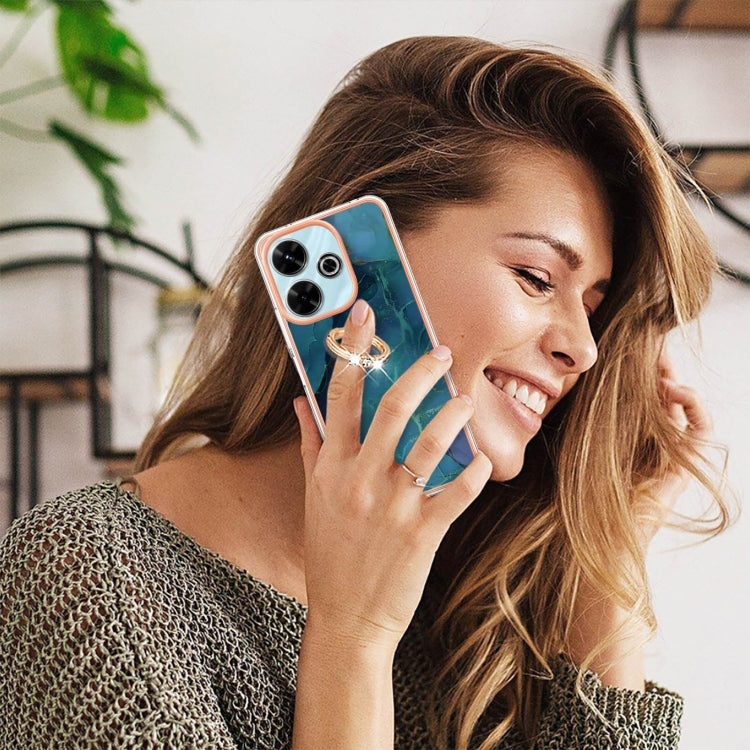 Electroplating Marble Dual-side IMD Phone Case with Ring, For Redmi 13 4G