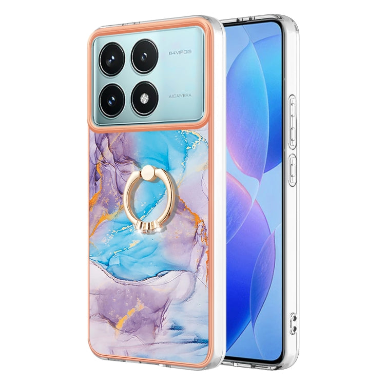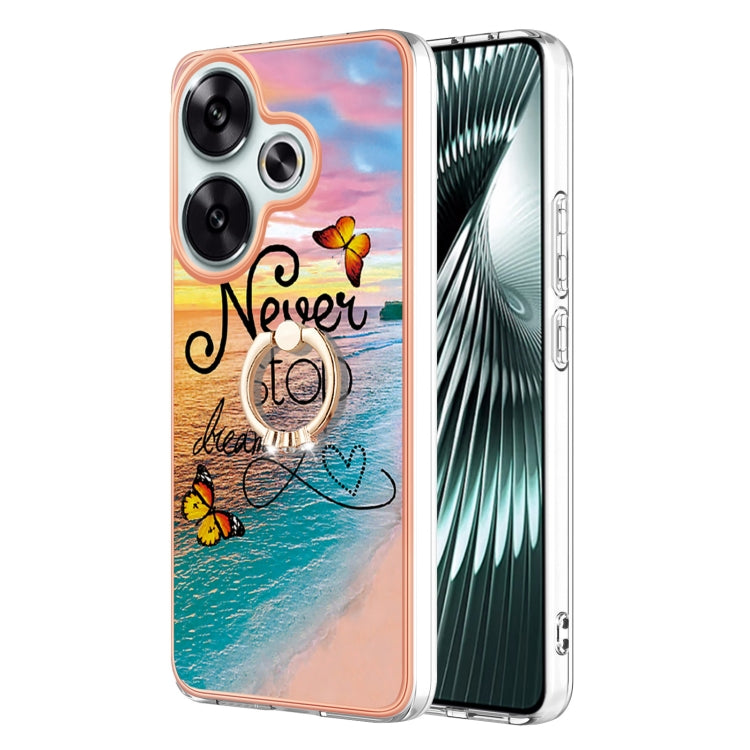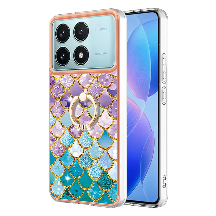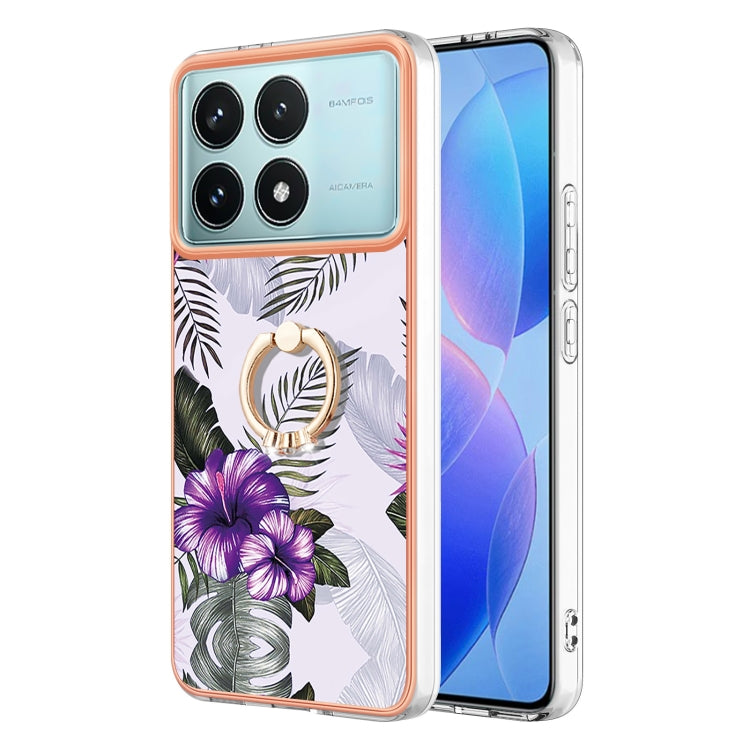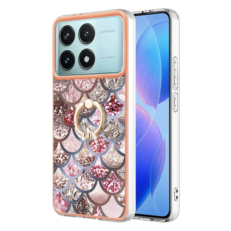 Electroplating Pattern IMD TPU Shockproof Case with Rhinestone Ring Holder, For Xiaomi Poco F6 5G, For Xiaomi Poco F6 Pro 5G