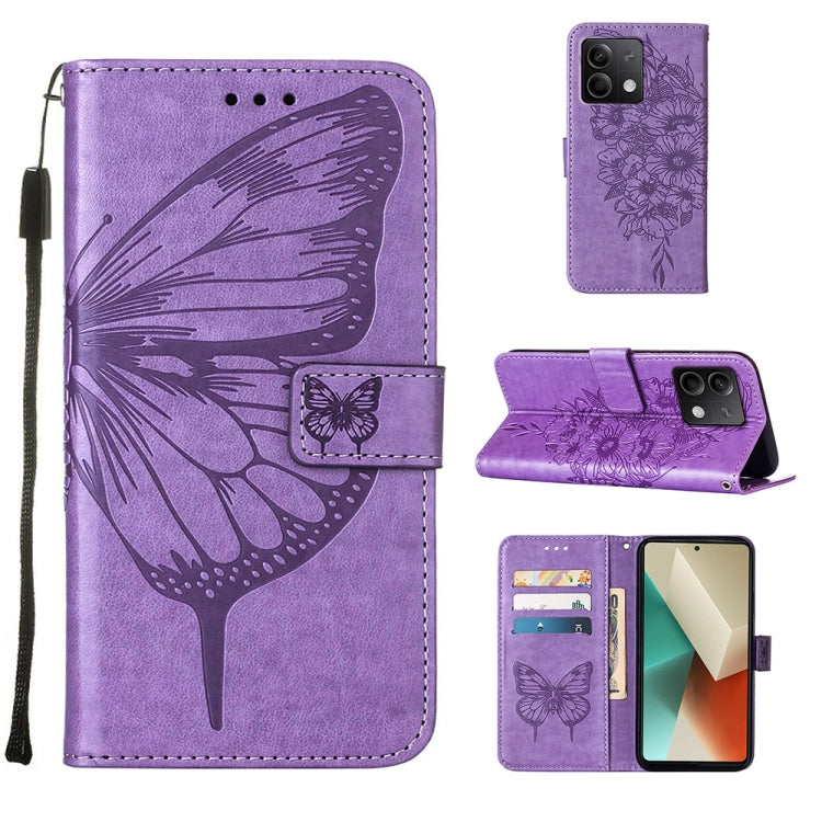 Embossed Butterfly Leather Phone Case, For Xiaomi 14 Pro 5G Global, For Xiaomi 14 5G Global, For Xiaomi Redmi Note 13 5G Global