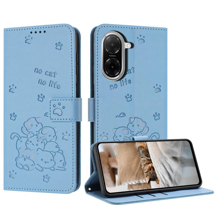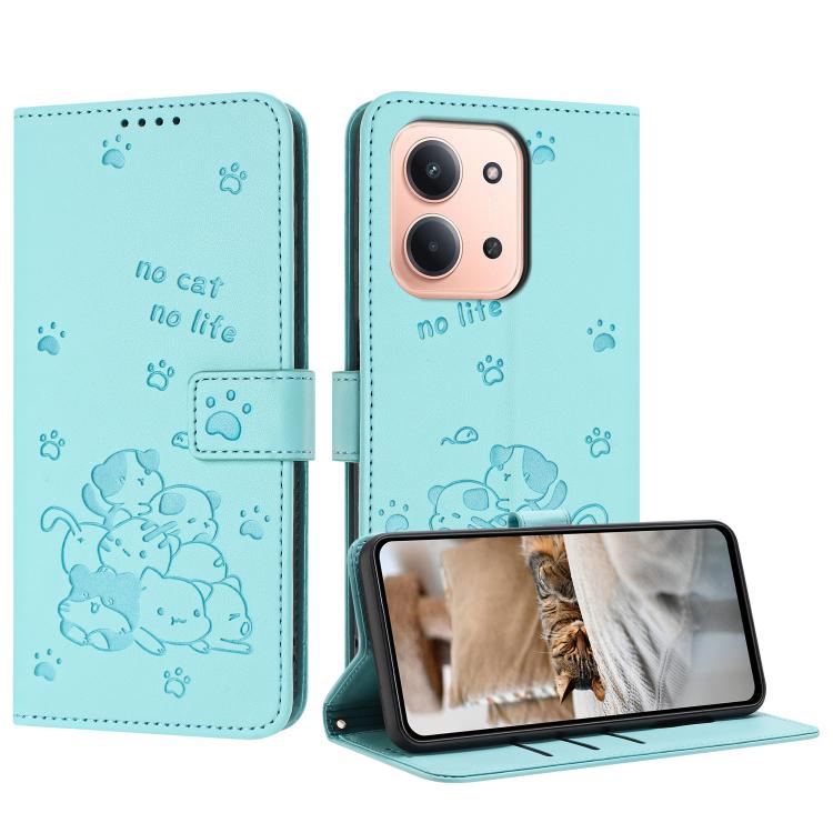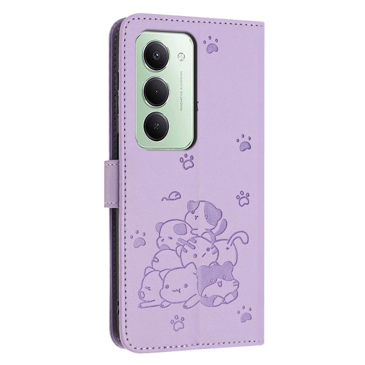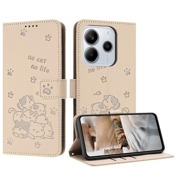 Embossed Kitten Phone Leather Case with Lanyard, For Redmi 15 5G / 4G EU 171mm, For Redmi 15C 5G / 4G Global 171mm, For Redmi A5 4G 171.7mm / Poco C71, For Redmi Note 14 4G 164.84mm
