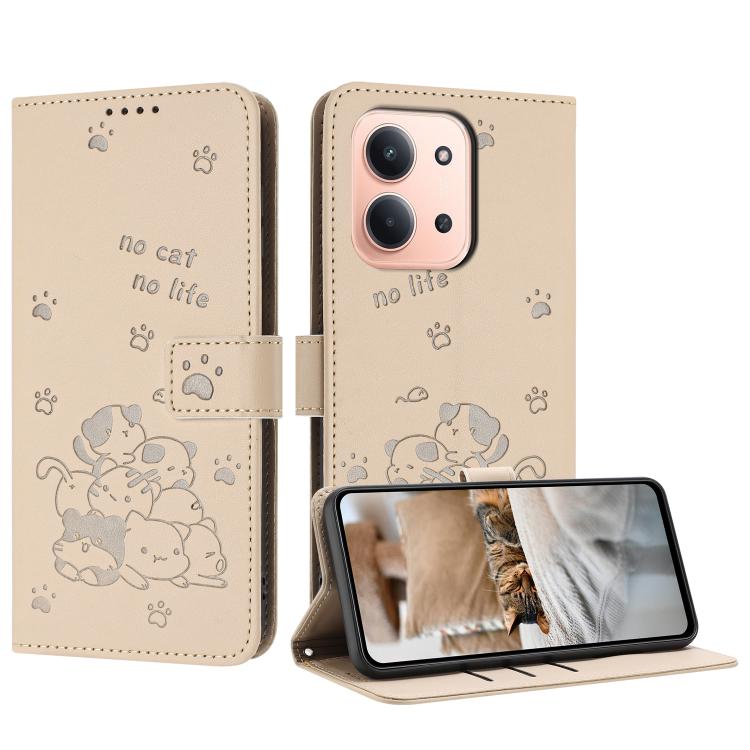 Embossed Kitten Phone Leather Case with Lanyard, For Redmi Note 15 Pro 5G Global 163.6mm, For Redmi Note 15 5G Global 164mm, For Redmi 15C 5G / 4G EU 173mm, For Redmi 15 5G Global / 4G SEA 169mm