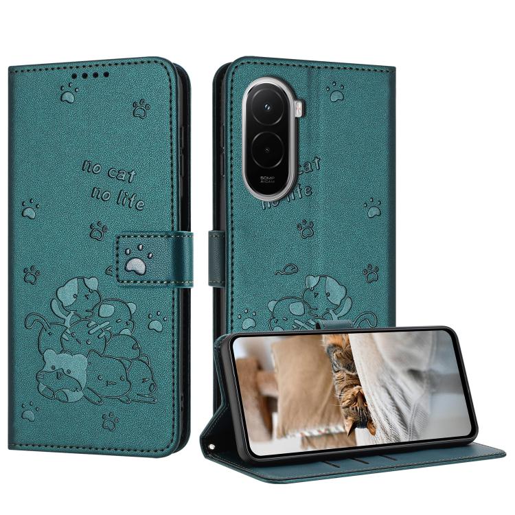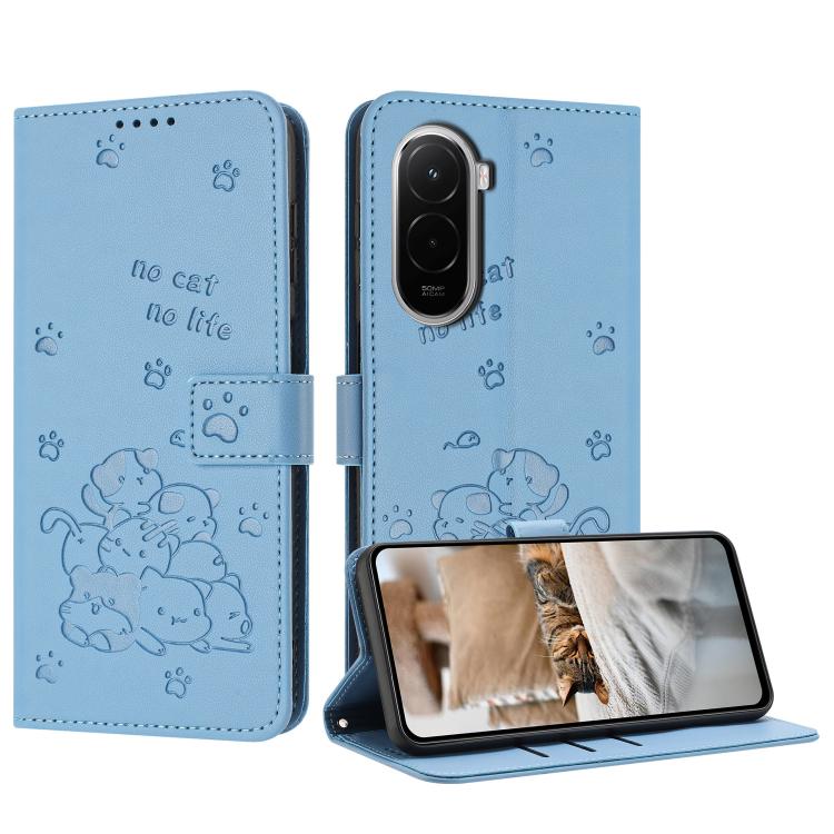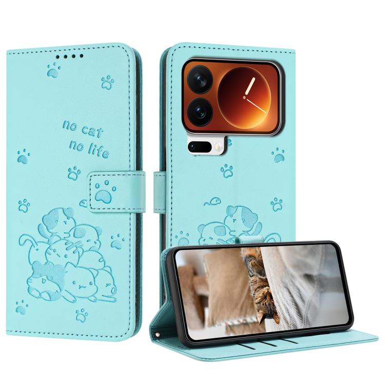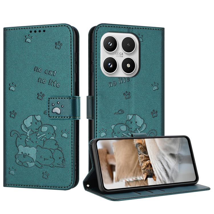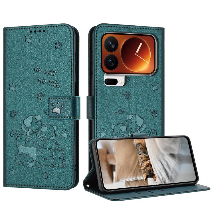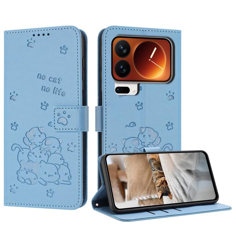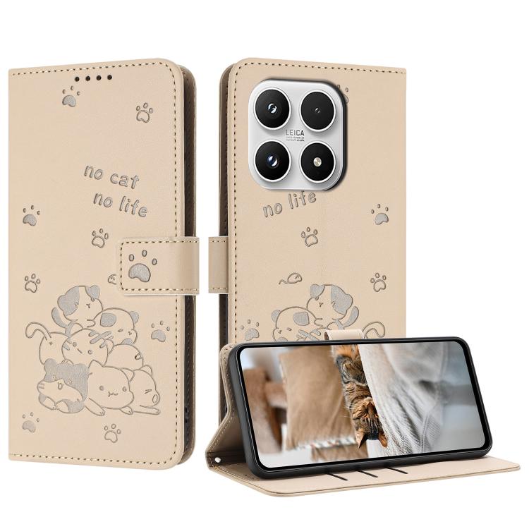 Embossed Kitten Phone Leather Case with Lanyard, For Xiaomi 17 Pro Max, For Xiaomi 17 Pro, For Xiaomi 17, For Xiaomi Poco M7 4G 169mm